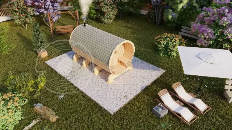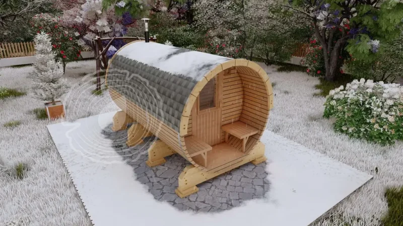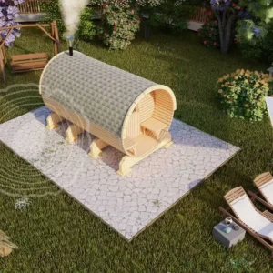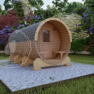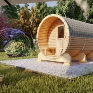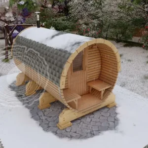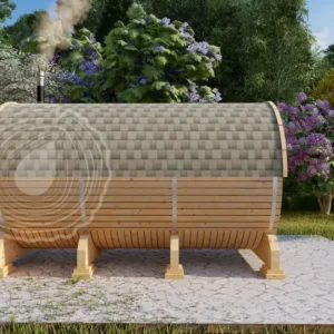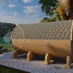 Fıçı Sauna Sara 3.5M, 3,5 metre uzunluğundaki oval yapısıyla estetik bir görünüm sağlarken aynı zamanda alanın verimli kullanımına olanak tanır. 7,2 metrekare kapladığı alan ve 10,2 metreküp iç hacmi ile 6-8 kişi kapasiteli bu sauna, geniş aileler ve arkadaş grupları için idealdir. 30×60 cm boyutlarındaki penceresi, doğal ışık almasını sağlayarak içeride ferah bir atmosfer yaratır. 70×160 cm ölçülerindeki kapısı, saunaya kolay giriş ve çıkış imkanı sunar.