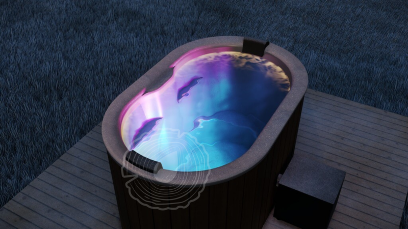 Ofuro Cold Plunge, elektrik erişimi olan açık hava alanlarında soğuk buz banyosu deneyimi sunar. 190 cm boyu ve 100 cm yüksekliği ve 120 cm genişliği ile 2 metrekarelik bir alanda 700 litrelik bir hacim oluşturur ve 2 kişi için idealdir.